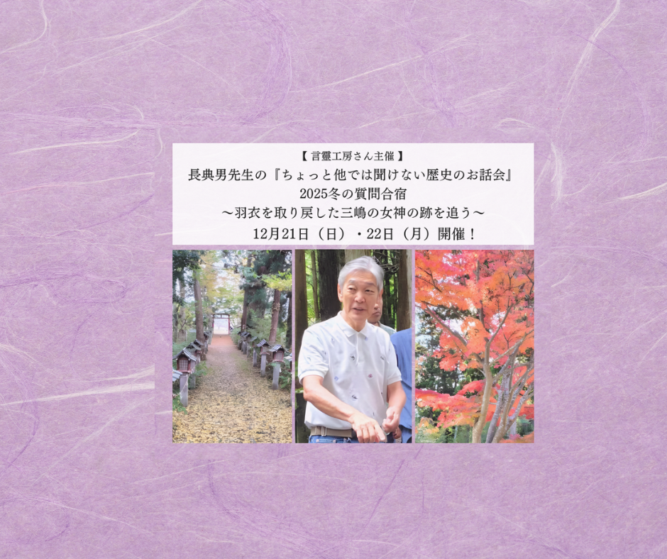 【募集中!】長典男先生の『ちょっと他では聞けない歴史のお話会』2025冬の質問合宿〜羽衣を取り戻した三嶋の女神の跡を追う〜言靈工房さん主催